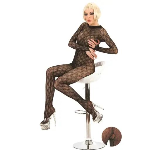 Костюм-боди на все тело из мелкой фиолетовой сетки