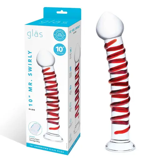 Фаллос с рельефной красной спиралью из стекла Mr. SWIRLY