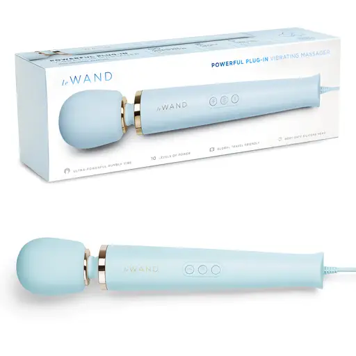 Нежно-голубой проводной вибромассажер le WAND Sky Blue с 10-ю скоростями