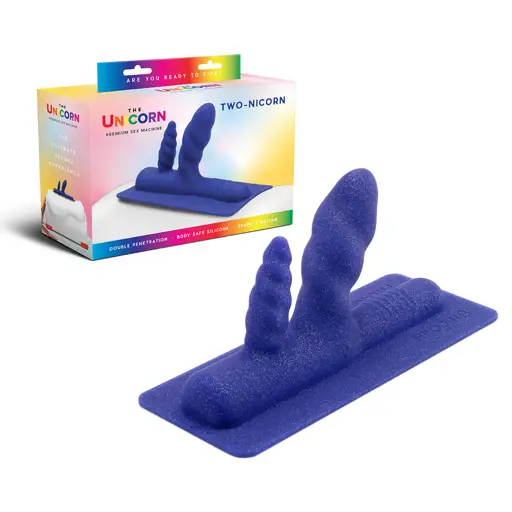 Двойная синяя насадка с блестками для премиум секс-машины UNICORN TWO-NICORN COWGIRL