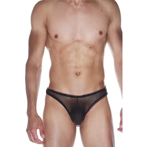 Тонги черные с узкой рюшей и розовой оторочкой