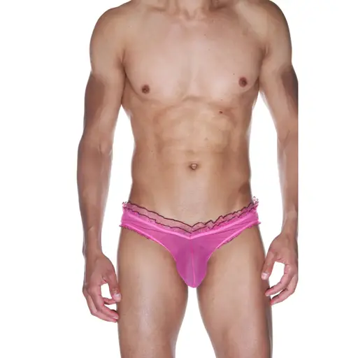 Тонги розовые с узкой рюшей и розовой оторочкой