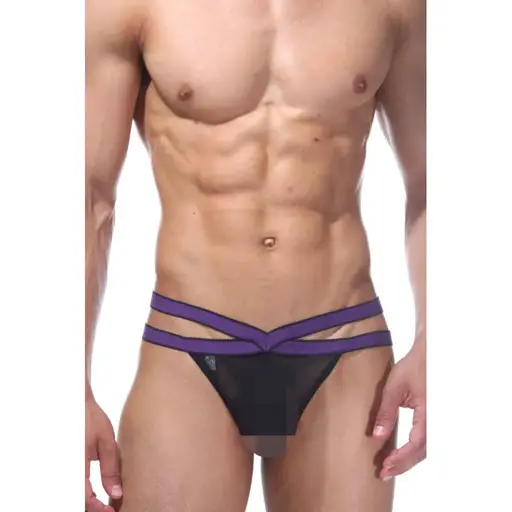 Тонги фуксия с узкой рюшей и черной оторочкой