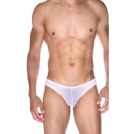 Тонги розовые с узкой рюшей и розовой оторочкой