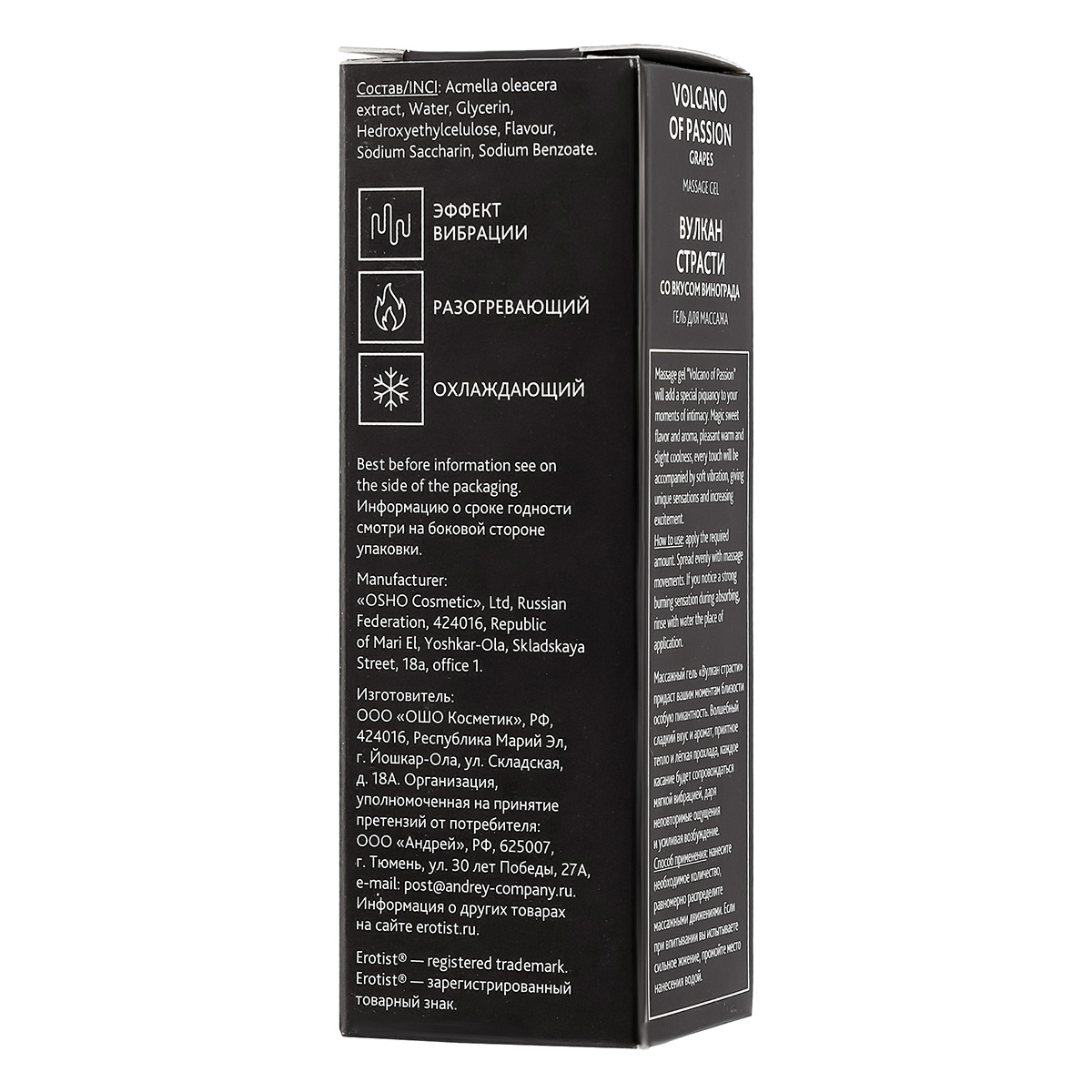 Массажный гель «Вулкан страсти» придаст вашим моментам близости особую пикантность. Подходит для поцелуев и орального секса, имеет вкус и аромат винограда.